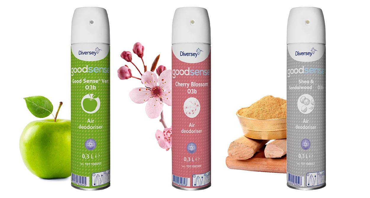 Good Sense 300 ml aerosols work with highly concentrated perfumes and compressed technology, resulting in small bottles that have a gauge similar to professional offerings with 500 ml content. This means a reduced need to replenish and less storage space – and makes Good Sense the more sustainable choice.