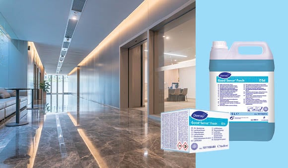 First impressions matter. Create the right one with Good Sense. Bad odours interrupt the impression of cleanliness and hygiene, even when the space has been professionally cleaned and is visually spotless. Diversey’s Good Sense air care solution creates a pleasant ambience that leaves guests, customers and clients feeling bright and comfortable in your facilities. This in turn underlines your brand proposition and can encourage to stay longer, come back or approve of your business to a higher degree.