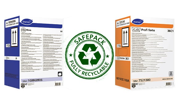 SafePack is a high-quality bag-in-box system for concentrated liquid detergents. The superior technology and design of SafePack ensures safety and ease of use for your staff. The "lock and key" connection prevents product contact and spillages and maximizes safety. The design of the pack also ensures that no product residues are left and significantly reduces packaging waste compared to cans.