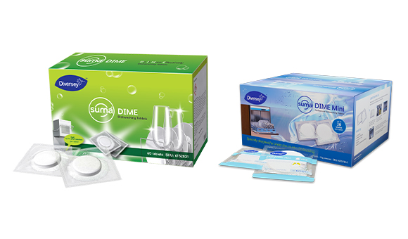 Suma DIME and Suma DIME Mini tablets are specially formulated with a patented technology of detergent with built-in rinse aid.