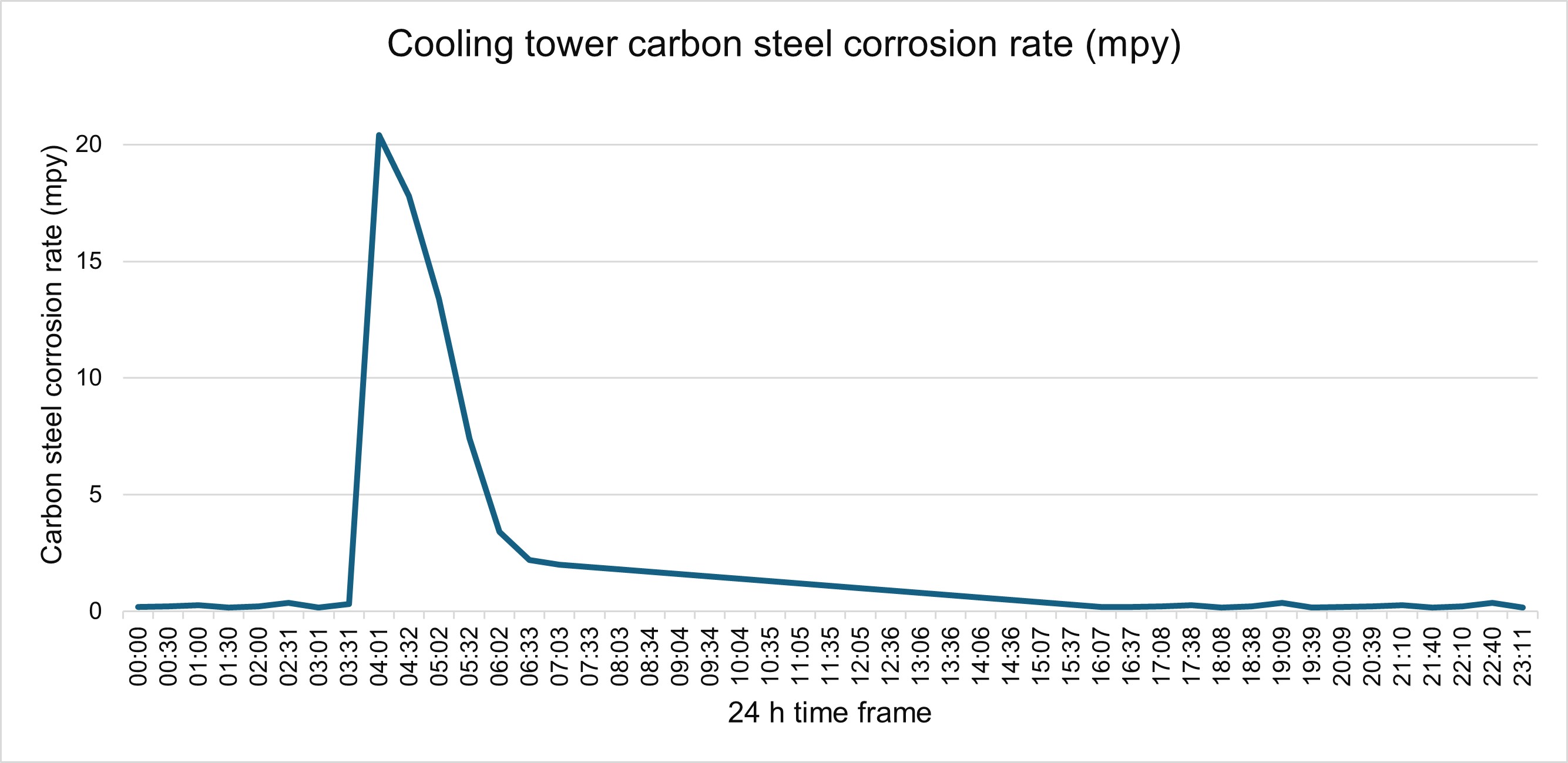 Figure 1 – Online corrosion rate measurement (carbon steel) of a cooling water system, performed by a LPR corrosion probe.