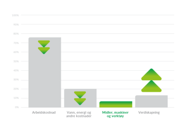 Ved å se på renhold som en helhet vil din bedrift kunne oppnå reduserte kostnader. I de aller fleste bedrifter er største kostnad relatert til renhold arbeidskost. Ved å effektivisere selve renholdet og i noen tilfeller endre på produktene man benytter til rengjøringen kan denne kostnaden reduseres sammen med kostnaden for vann, energi og eventuelle andre kostnader.