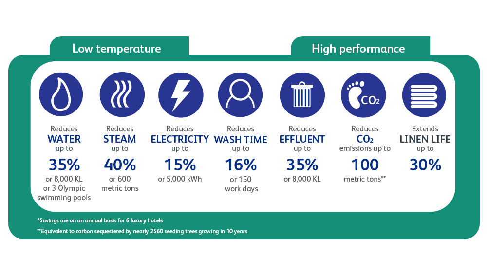 Sofitel Mumbai współpracuje z Diversey w celu zmniejszenia wpływu na środowisko dzięki zastosowaniu środka Clax Advanced, który zapewnia czystsze, bielsze pranie przy mniejszym zużyciu wody i energii